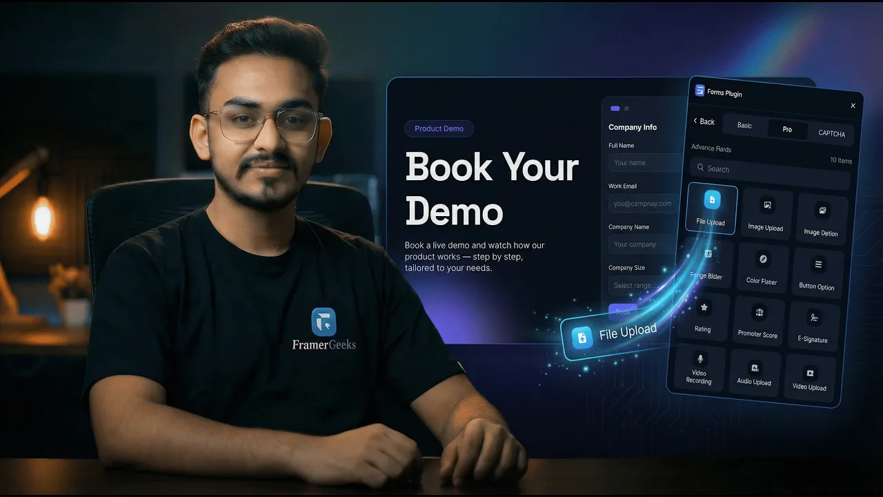 Go beyond simple inputs. Add File Upload and other advanced fields to collect richer structured data directly inside Framer without external tools.