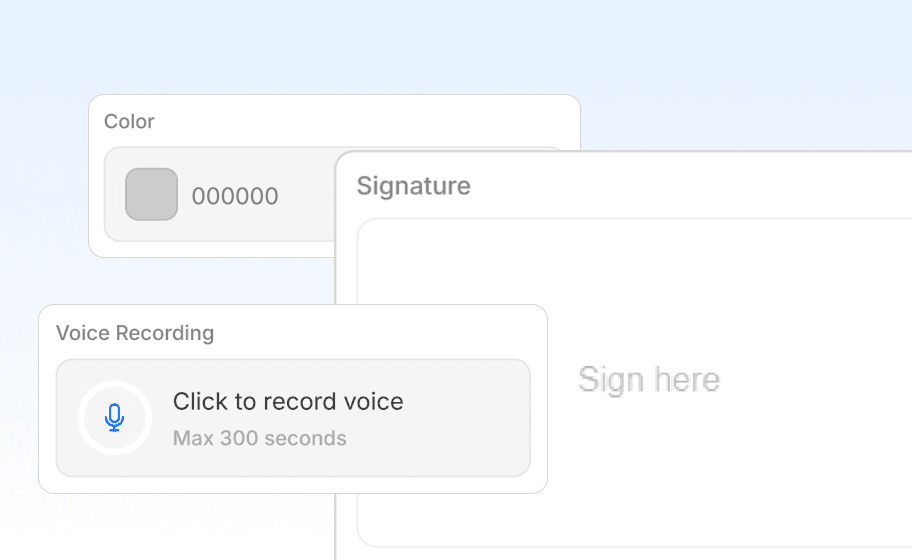 Add modern inputs like e-signatures, voice, and color fields - fully native to Framer forms.