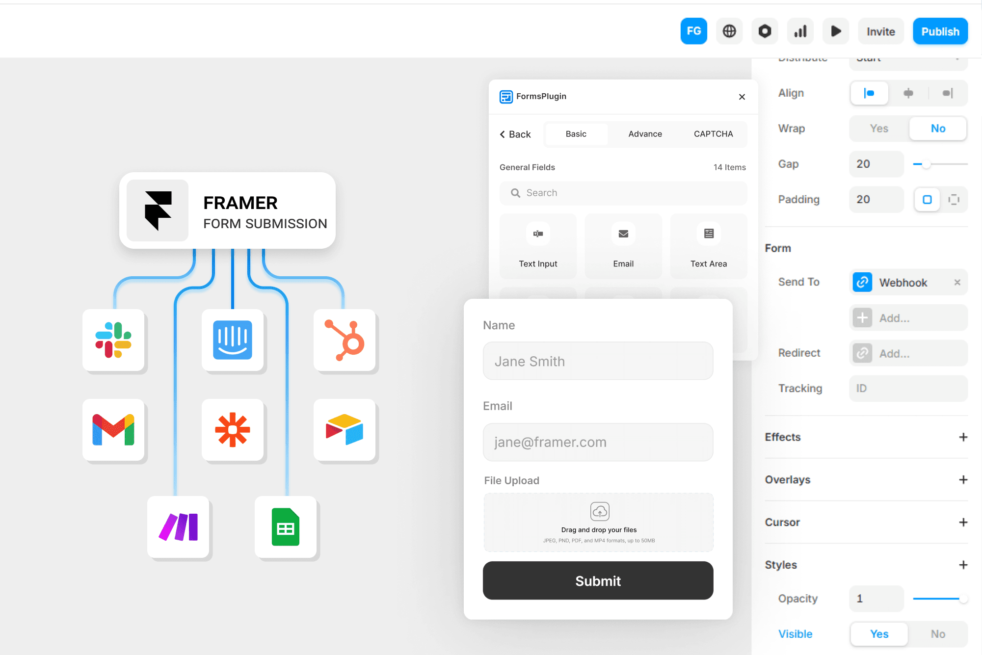 Connect your Framer forms with email, CRM, and automation tools. Sync data instantly and power smarter workflows.